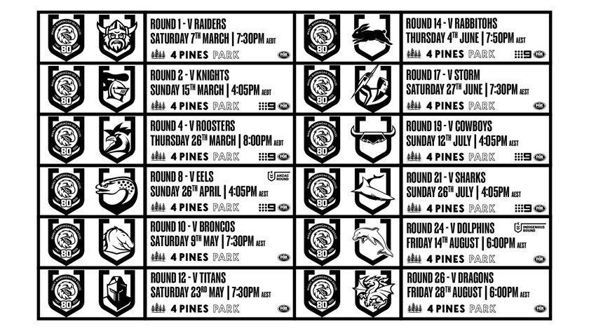 Including home games, 16 of Manly's 24 games are in Sydney, with another two in Wollongong and Newcastle. Five games are interstate, and one will be played in Auckland.