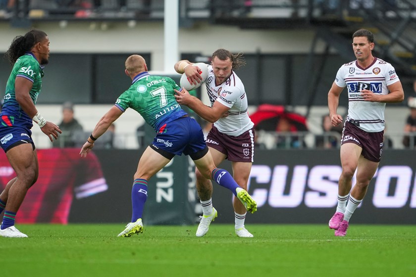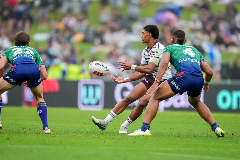 Manly forced another Warriors’ error when Onitoni Large pressured centre Leka Halasima into making a mistake, with Manly also unable to complete their next set after a fumble by Willett at the play-the-ball.