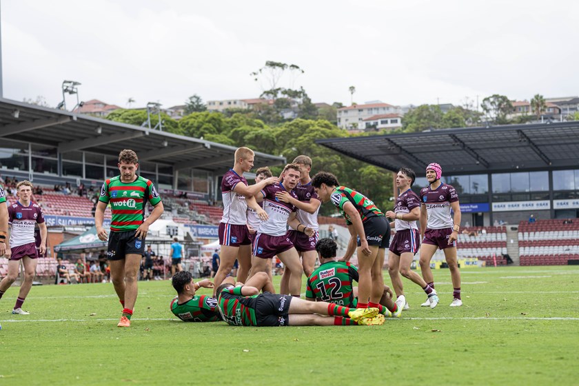With Manly losing five-eighth Onitoni Large to the sin-bin for 10 minutes, Souths capitalised immediately with five-eighth Taj Alvarez slicing through for a 20-0 lead after 42 minutes.