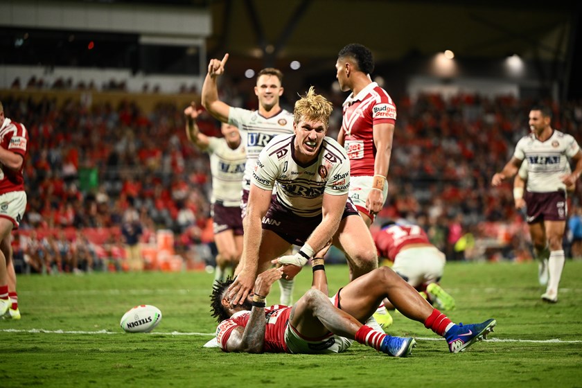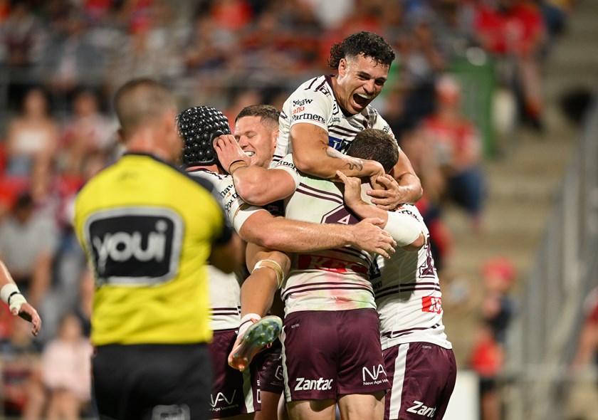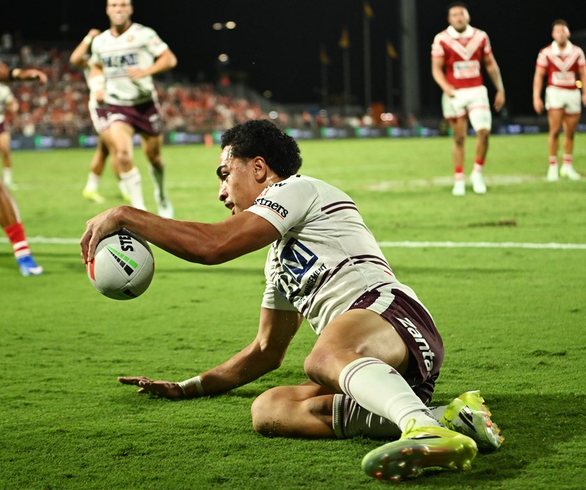 This time it was Tolu Koula who found the line for Manly’s seventh try of the night. The Tongan speedster, having shifted to fullback, ran a deceptive line from inside out, scoring off a Brooks' short ball.