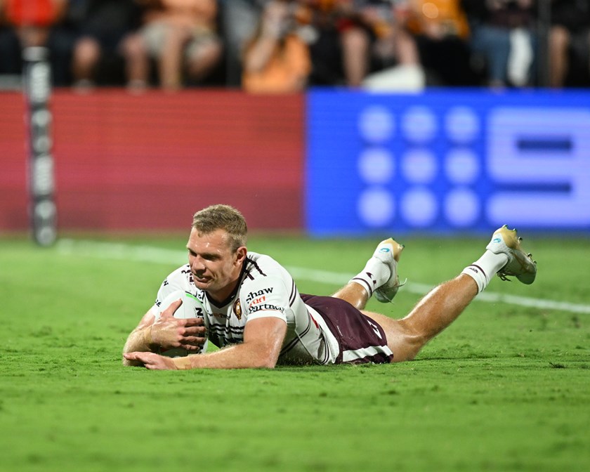 The points avalanche continued when Luke Brooks bagged his team's fifth try two minutes out from the break. Another perfectly weighted kick in goal from Fogarty found Brooks on the fly, who grounded the ball just short of the dead ball line, to put his team up 28-0 at half time.